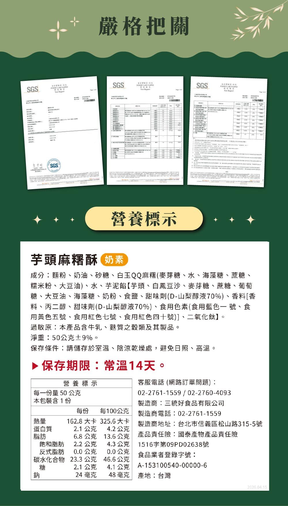 • 保存期限:常溫未開封常溫14天,開封後冷藏2-3天內食用完畢。