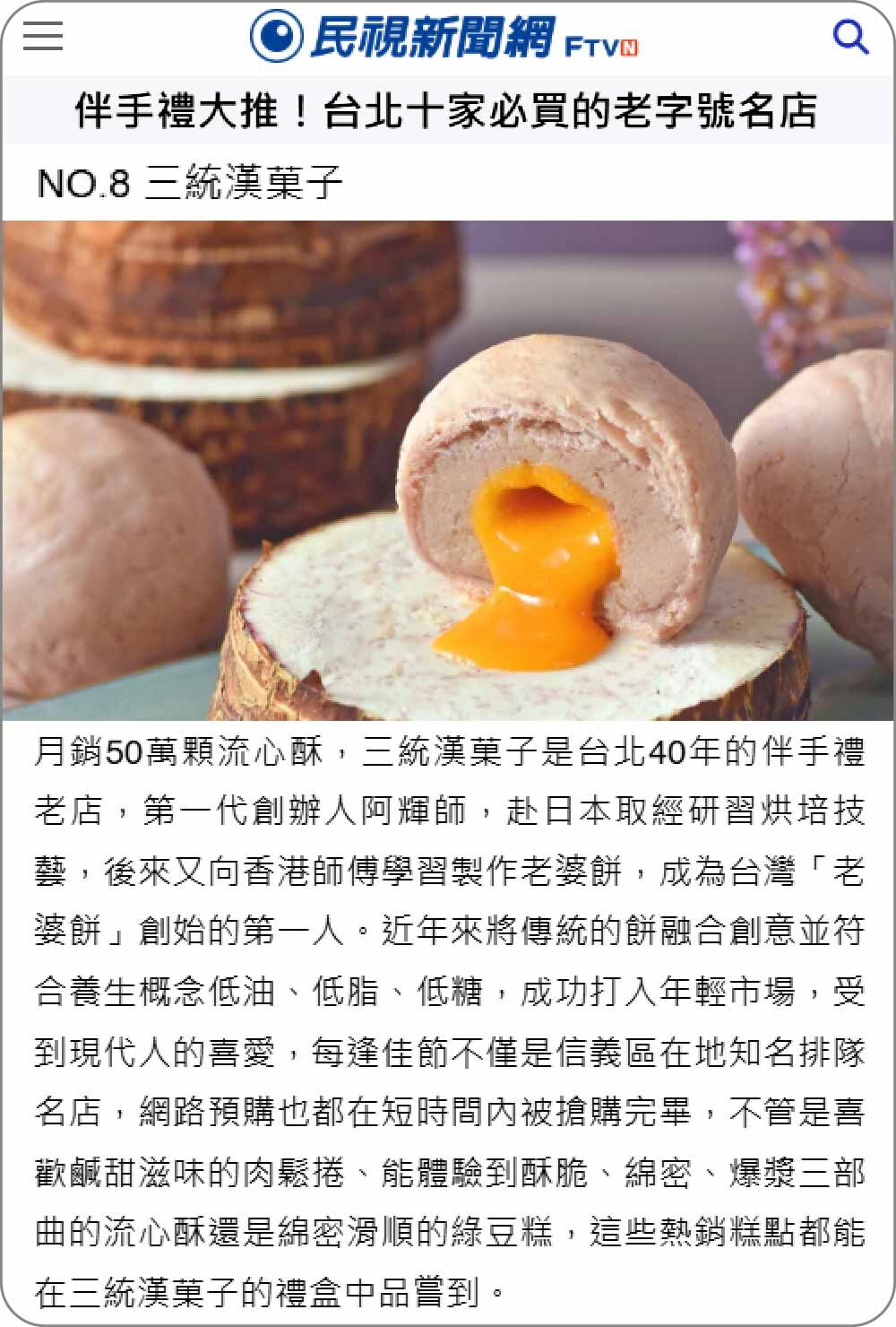 說起經營40多年的三統漢菓子,你可能不知道它就是台式伴手禮「老婆餅」的創始店家也是許多饕客心中最愛的糕點品牌。三統雖然沒有華麗的外觀、浮誇的行銷方式,卻以老師傅阿輝師從日本取經帶回來的記憶和飄香多年的 在糕餅界有著舉足輕重的地位。然而在疫情爆發後門市生意大受影響所以更積極轉型加上電商興起三統漢 子與其他糕餅同業一樣開始了與美安合作的契機。