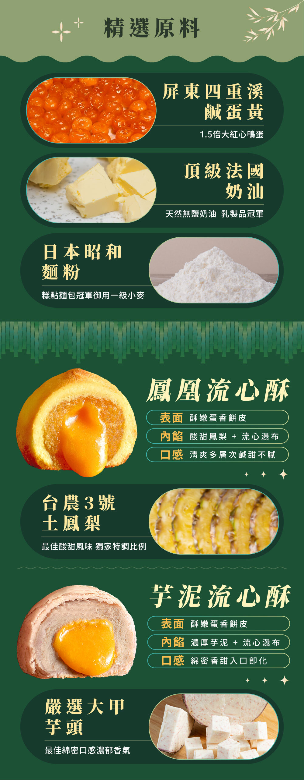 內容物:鳳凰流心酥*3+芋泥流心酥*3+抹茶濃心捲*10