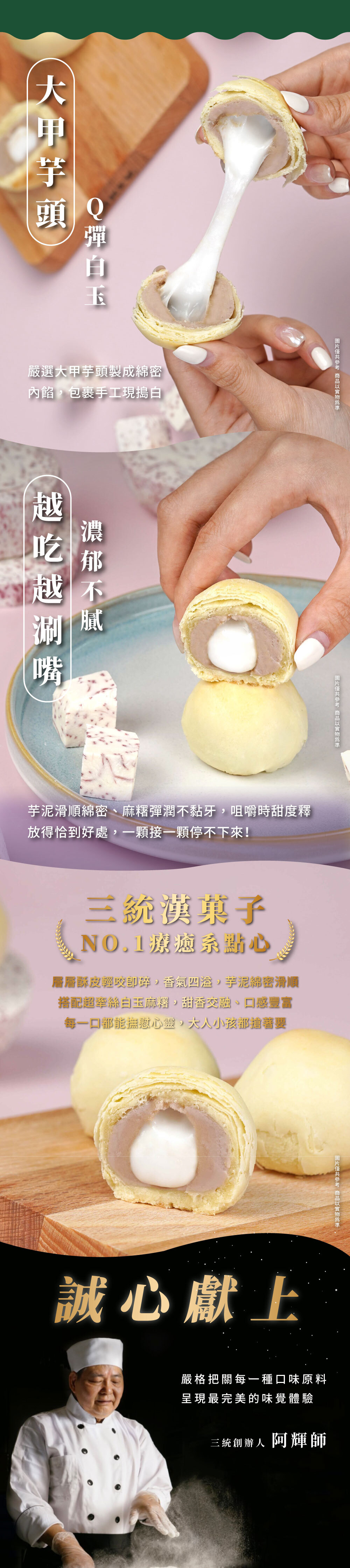 外層淡黃酥皮,層層酥鬆不油膩,中層綿密芋泥,入口即化,內餡Q彈麻糬更是靈魂關鍵,完美融合多重口感,讓人一吃就愛上。獨家比例製作,甜度拿捏恰到好處,冷藏、常溫都好吃,是甜點控不可錯過的夢幻逸品。2025端午禮盒推薦必選這款口碑王者,兼具職人手感與療癒系風味,輕咬一口,滿滿芋香與麻糬的軟Q在嘴裡化開,幸福感瞬間爆棚。