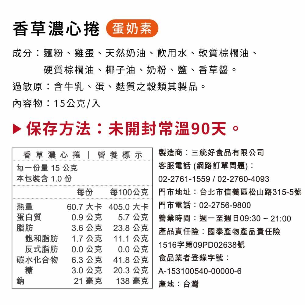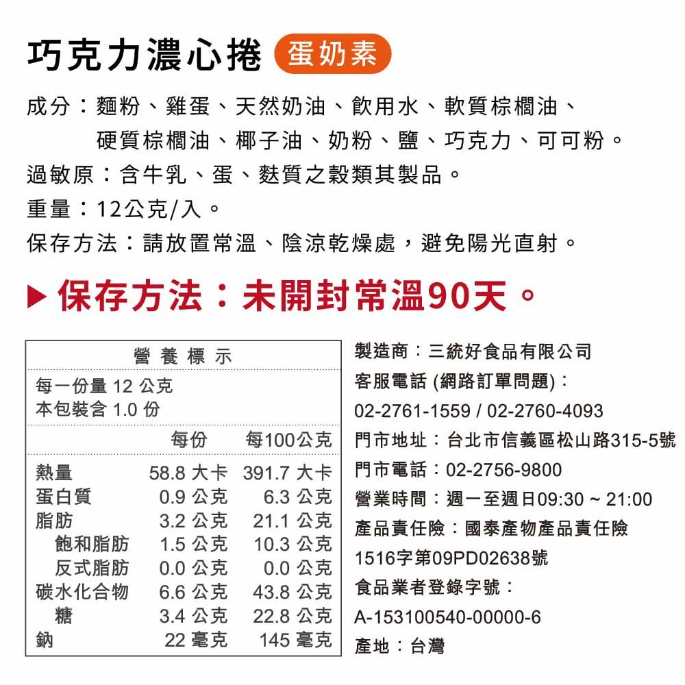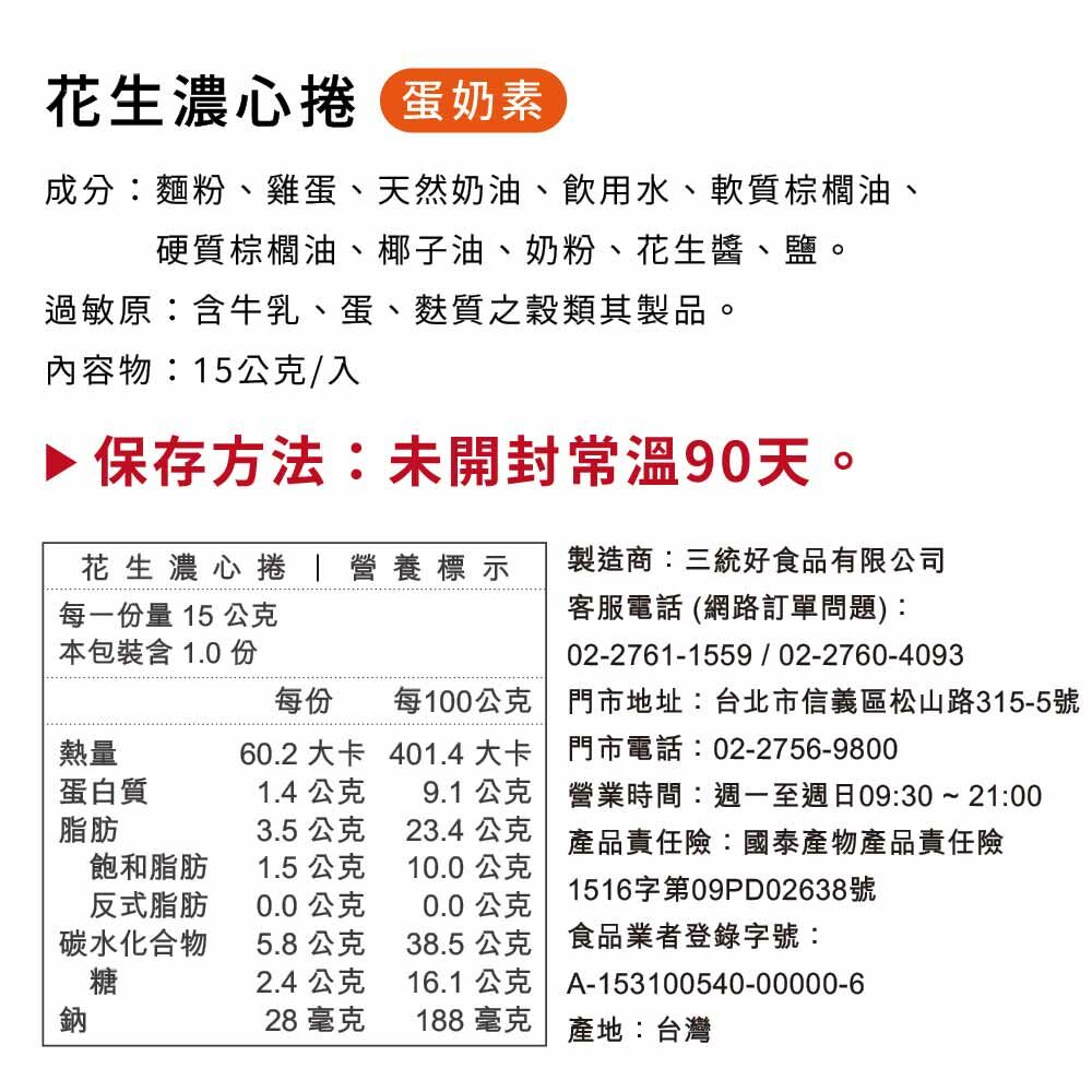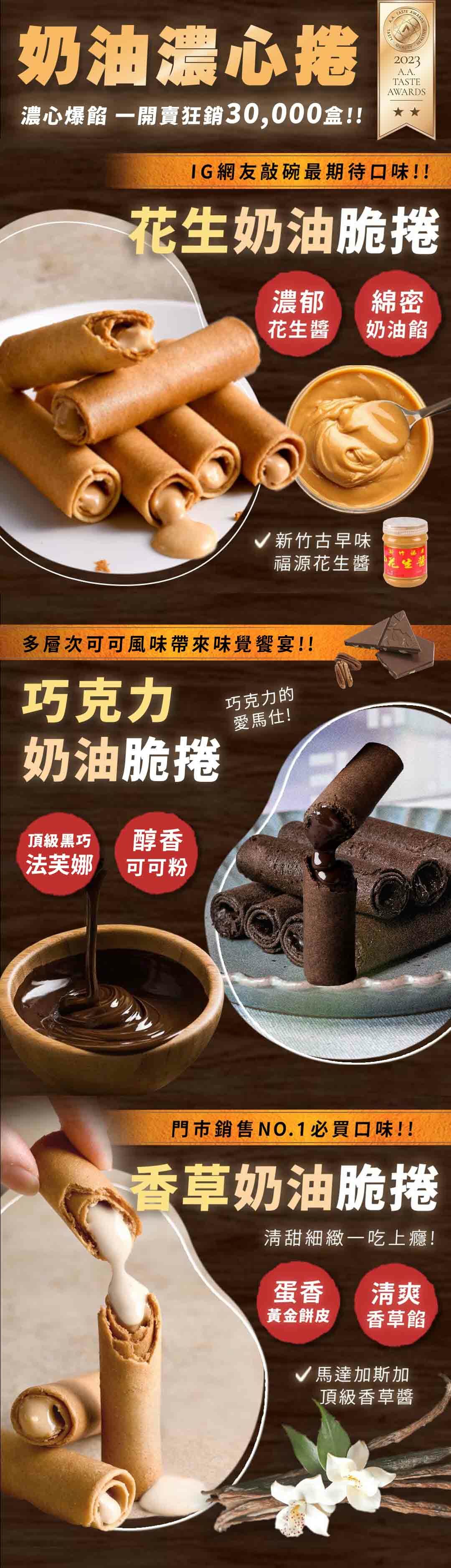 【花生/香草/巧克力濃心捲】蛋奶素,常溫90天