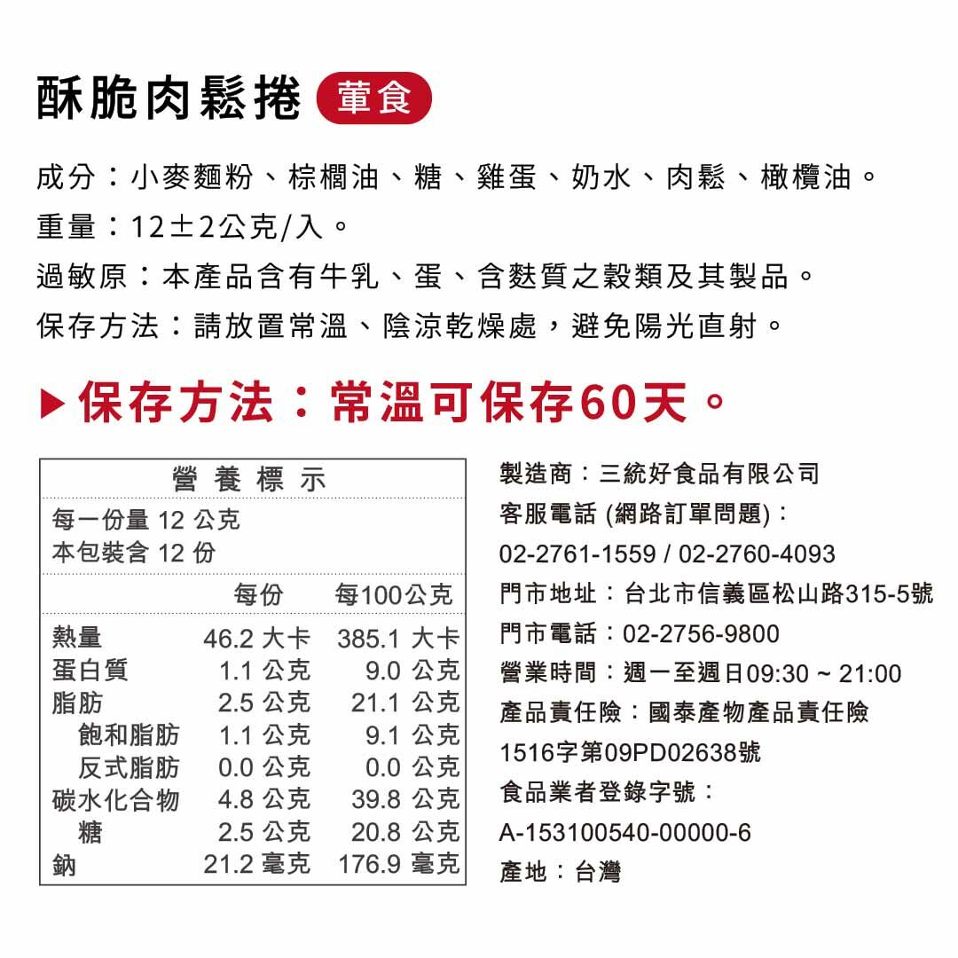 【酥脆肉鬆捲】葷食,常溫60天