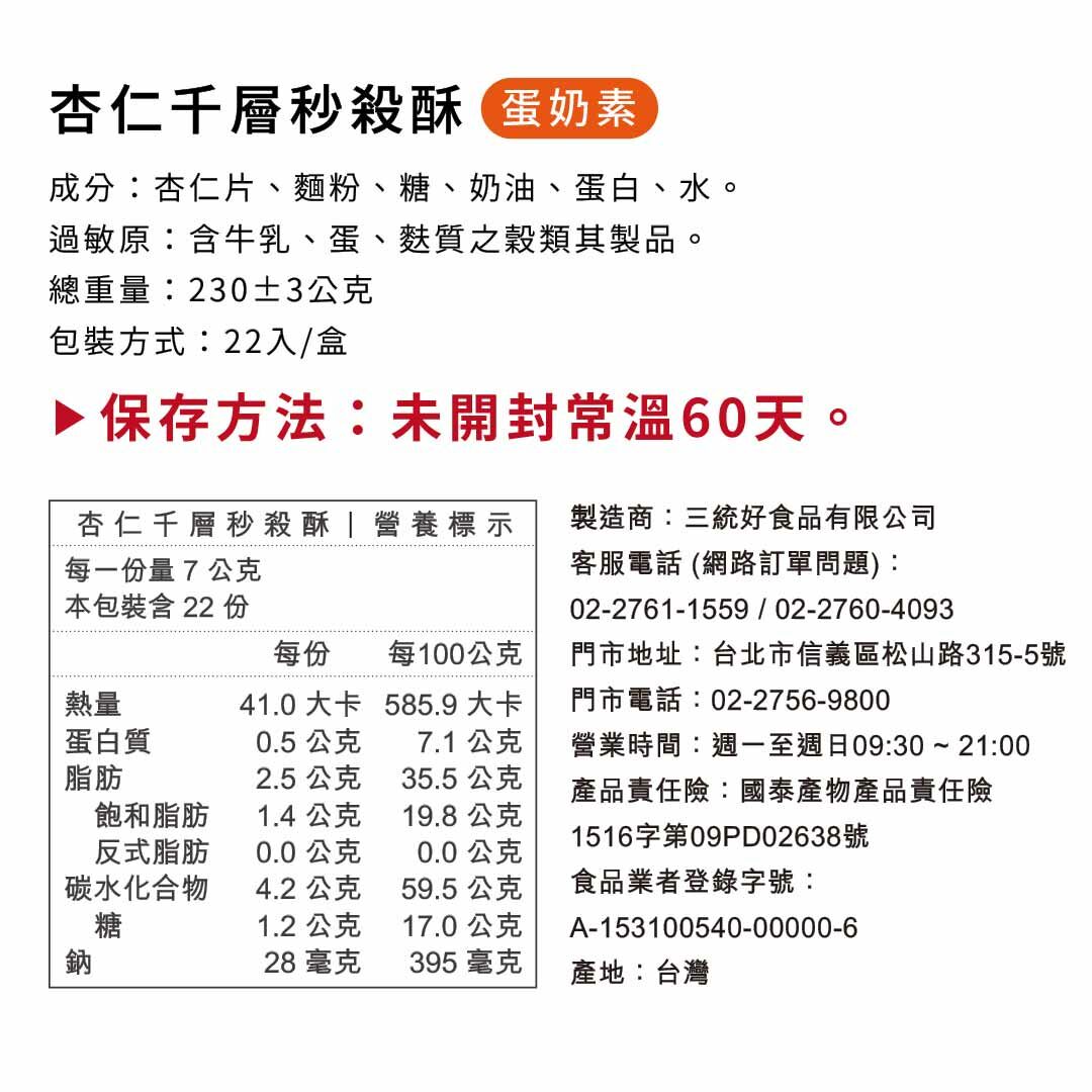 【杏仁千層秒殺酥】蛋奶素,常溫60天