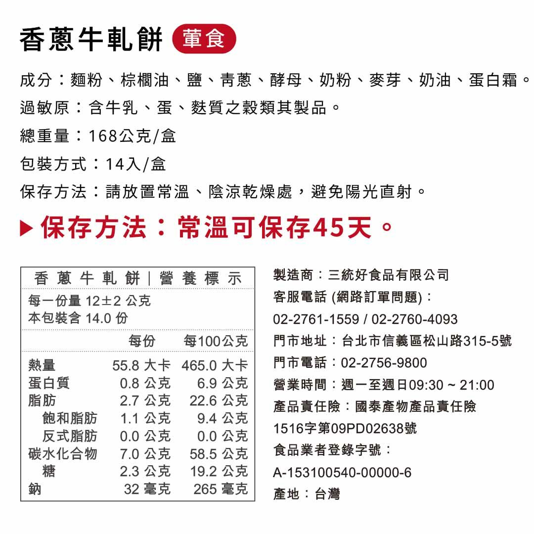 【香蔥牛軋餅】葷食,常溫45天