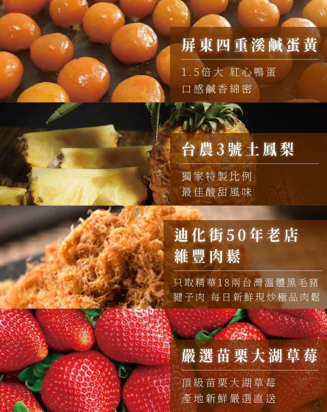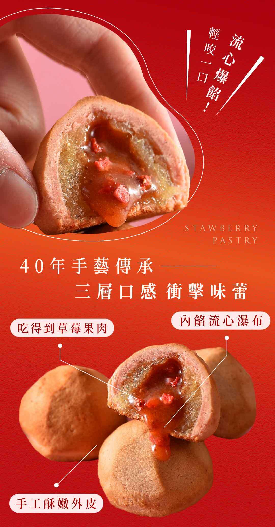 • 內容物:鳳凰流心酥*5+肉鬆流心酥*5+草莓流心酥*5