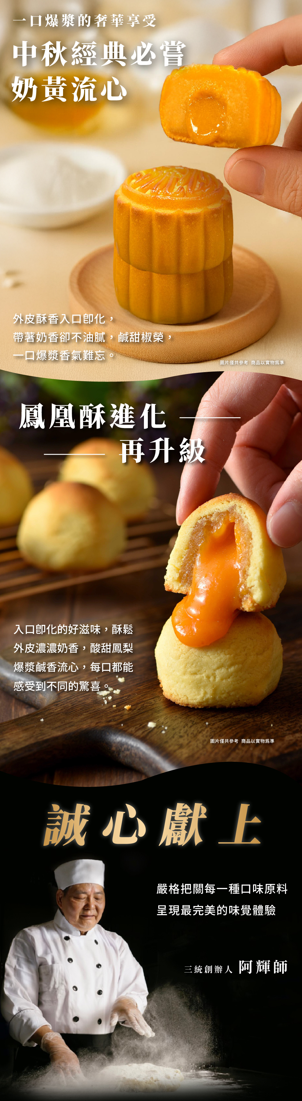 2025中秋禮盒推薦,中秋經典必嚐—奶黃流心,嚴選蛋黃與奶油慢火翻炒,外皮酥鬆細緻,2:8皮餡比例,一口爆漿鹹甜交融,不甜不膩;鳳凰流心酥,酸甜果韻搭配奶香流心,咬下即迸發驚喜,風味清爽有層次,是2025中秋禮盒推薦的絕佳組合!