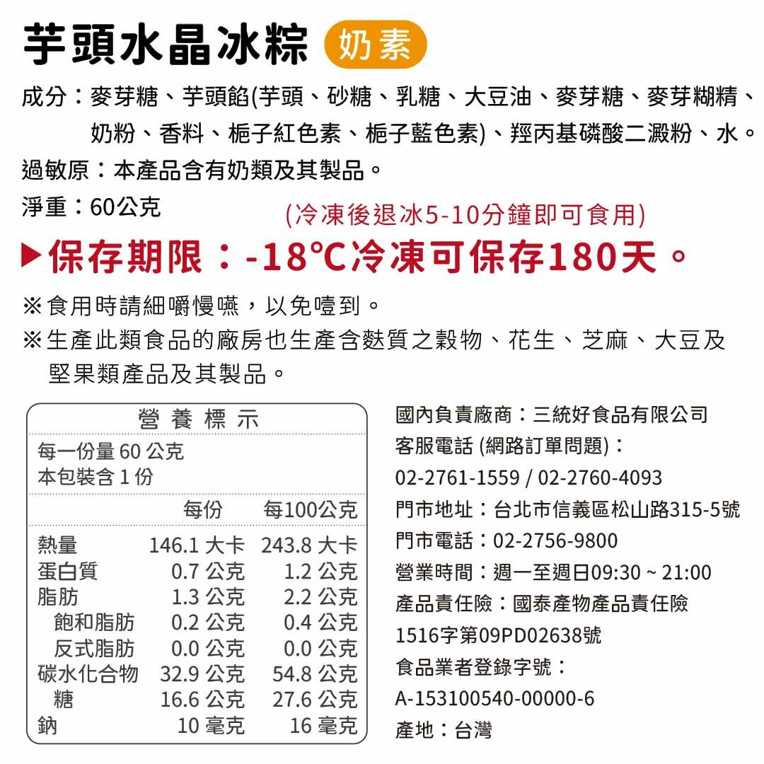 三統獨家研發QQ水晶冰粽,嚴選香濃花生、香甜紅豆與三統人氣芋頭,搭配清涼爽口冰Q外皮,口感分明,意想不到的絕品好滋味!