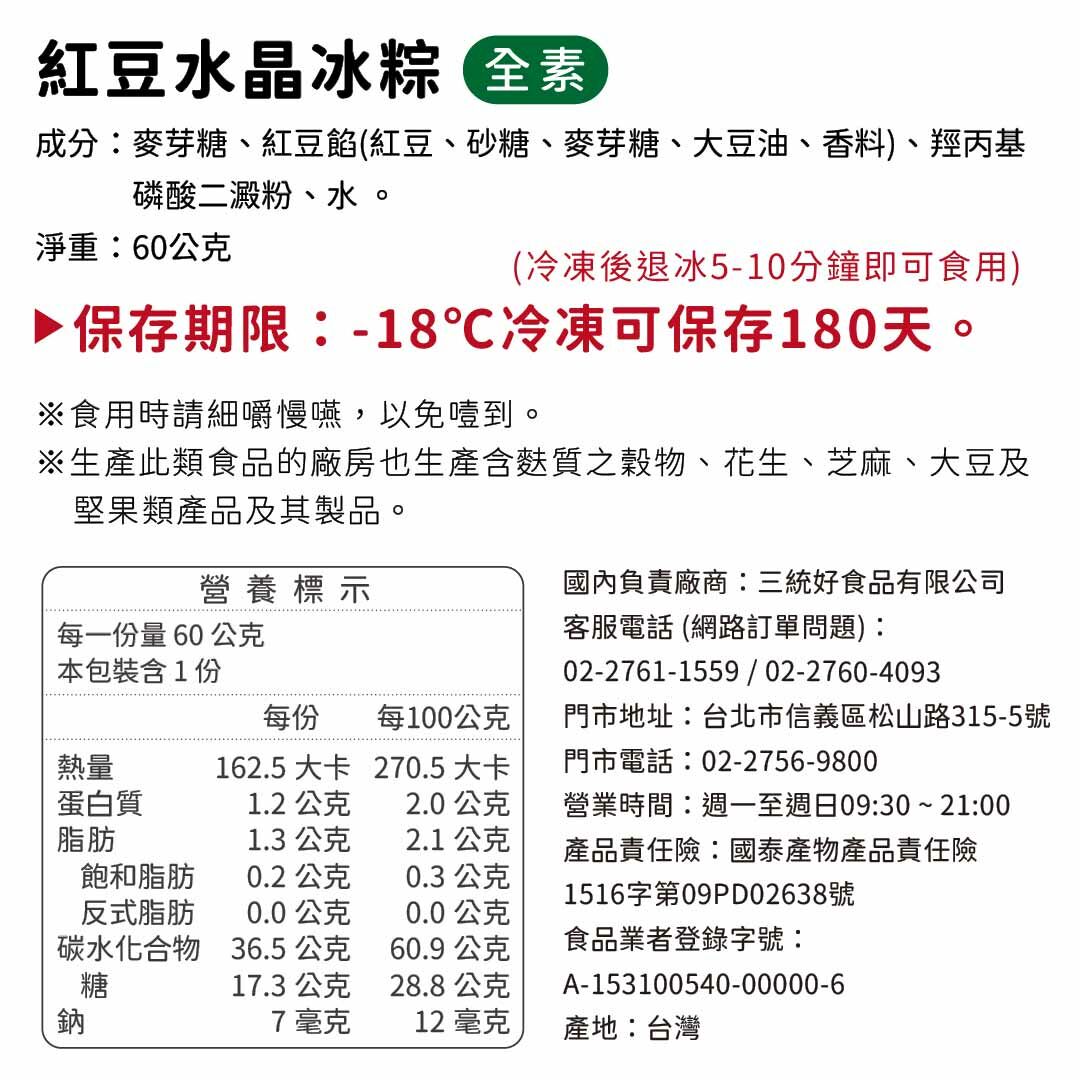 • 內容物:水晶冰粽-10入 (芋頭/紅豆/花生)