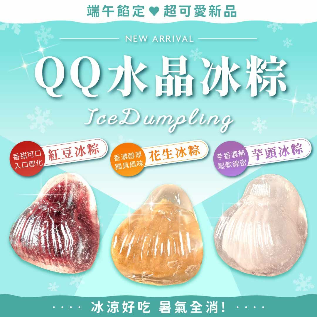 2026端午禮盒推薦,端午佳節傳統粽子之外另一個冰涼又應景選擇!三統獨家研發QQ水晶冰粽,最新精緻美味技藝,嚴選香濃花生、香甜可口紅豆、香濃花生內餡、濃郁香甜芋頭餡,搭配清涼爽口冰Q外皮,口感分明,雙重享受,讓您意想不到的絕品好滋味!絕妙的組合,為您帶來觸動味蕾的全新感受!