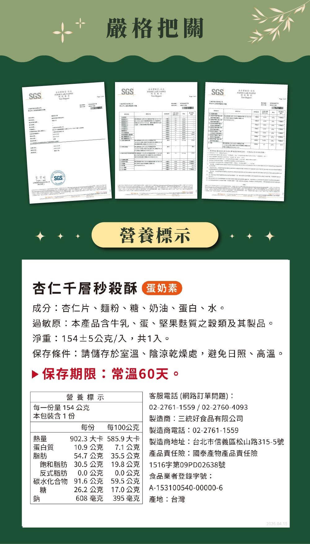 一口咬下,酥脆聲輕響,千層餅皮層層分明、入口即化,外層覆上滿滿香烤杏仁片,堅果香與奶油香氣交織,香氣濃郁卻不甜膩。酥皮邊緣脆中帶酥,中段則細緻鬆軟,咀嚼間堆疊出豐富層次。冷吃清爽、微烤後焦香加乘,每一口都有不同驚喜,是午後時光的絕佳搭配。《杏仁千層秒殺酥》以其輕盈、不油膩的質地深受喜愛,是今年2026端午禮盒中備受關注的亮眼點心,在眾多端午禮盒推薦中脫穎而出,為你的端午禮盒增添酥香滋味與細緻層次。