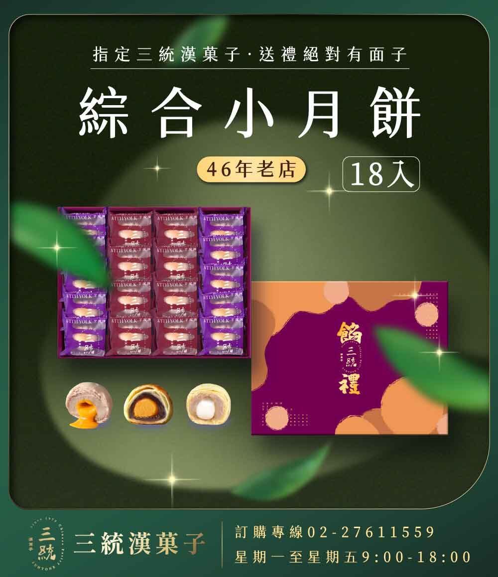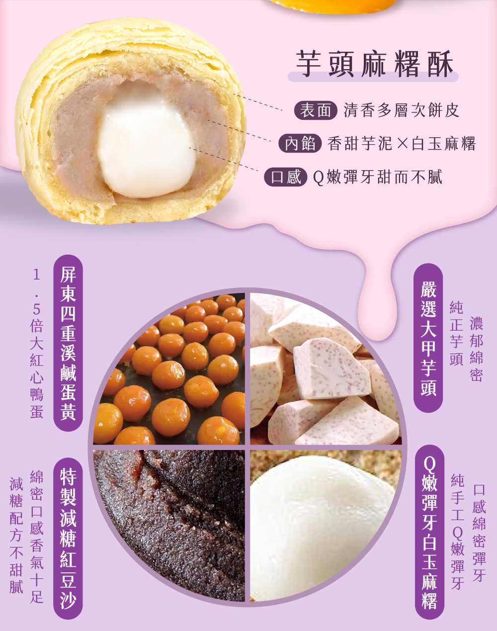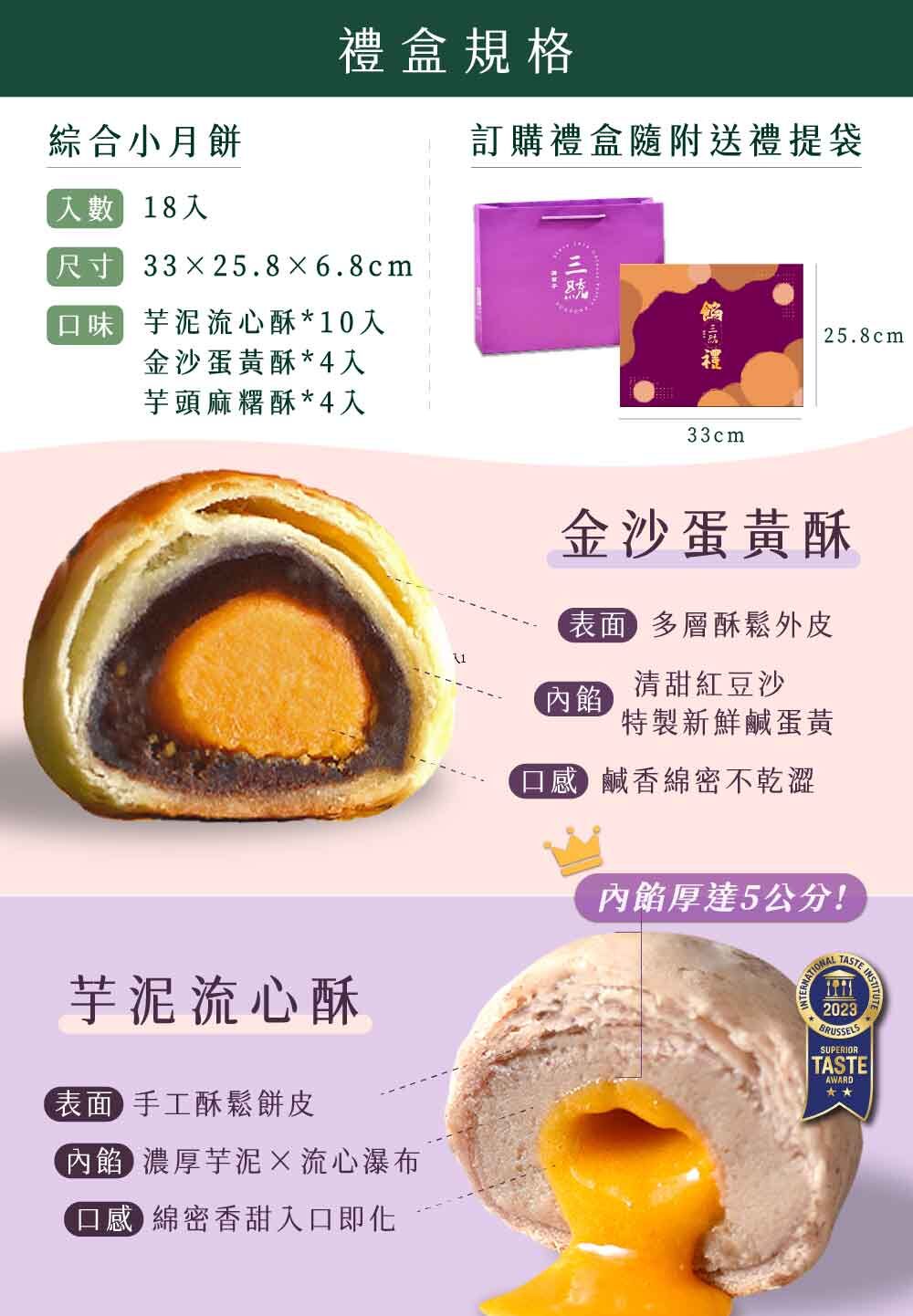 • 綜合小月餅 18入:芋泥流心酥*10+金沙蛋黃酥*4+芋頭麻糬酥*4
