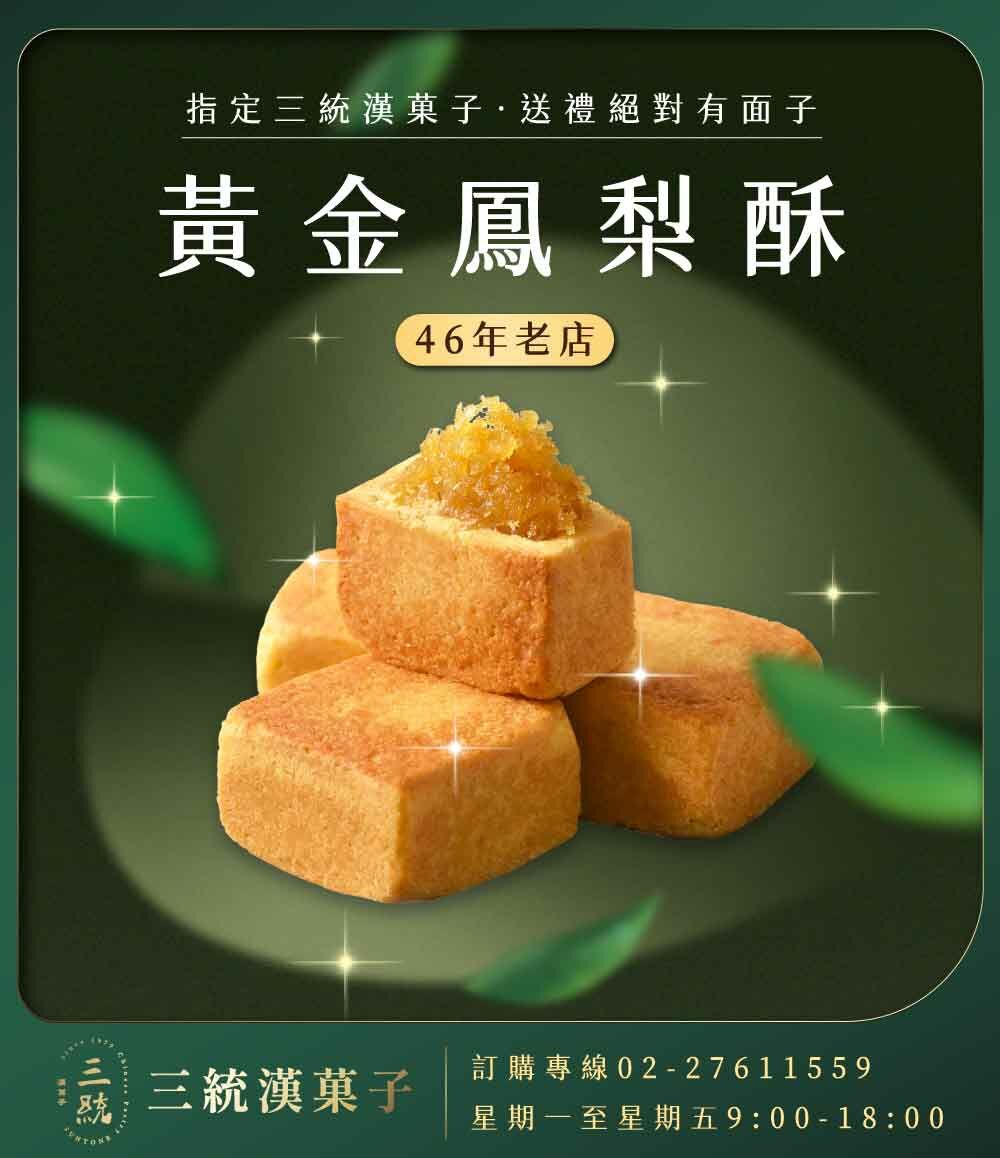 老牌鳳梨酥玩出新花樣,三統鳳梨酥賣爆海外,為觀光客來台狂掃的伴手禮推薦!