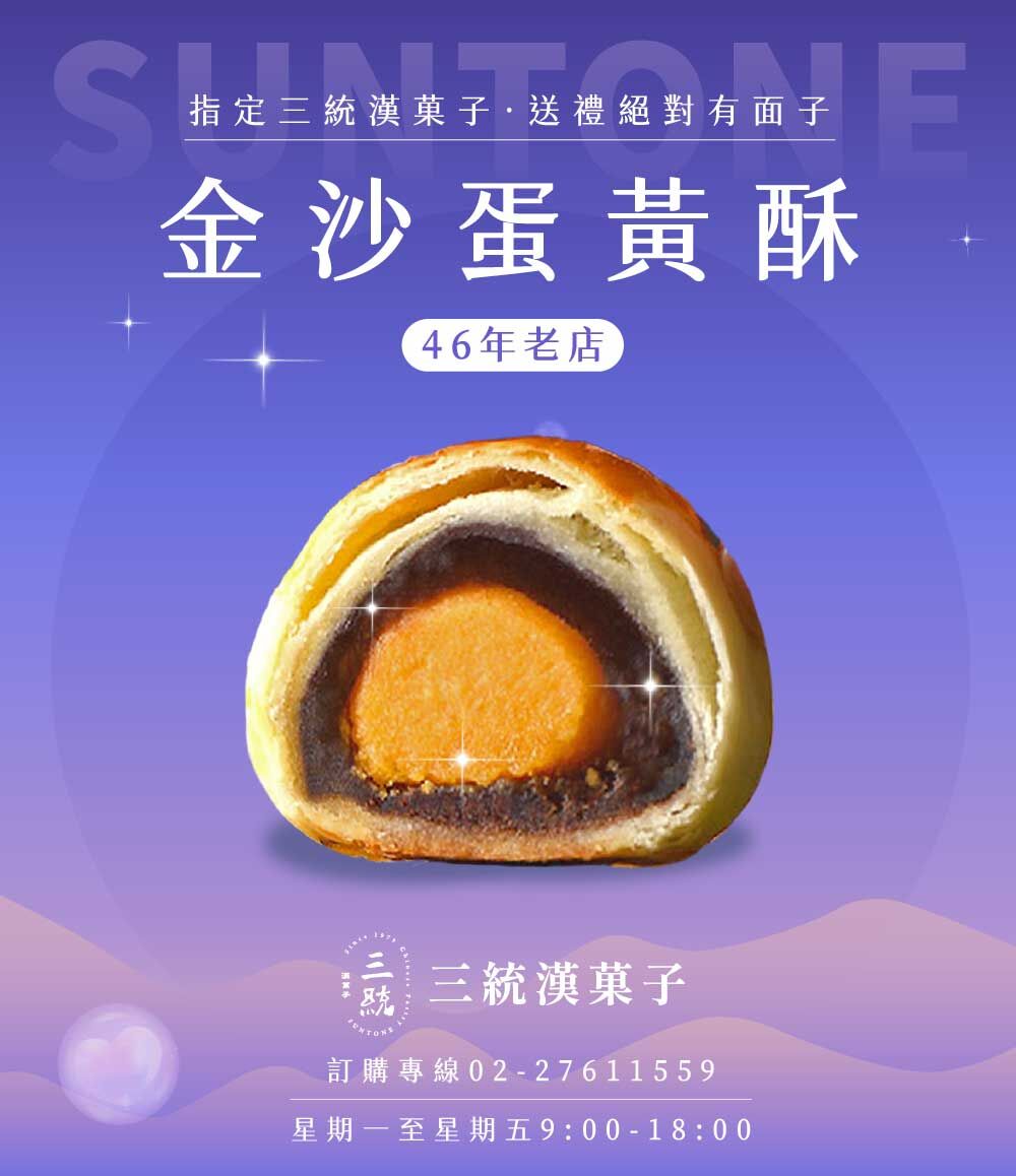 2025伴手禮推薦,選用屏東小農四重溪鹹蛋黃,1.5倍大紅心鹹鴨蛋,口感鹹香綿密,搭配入綿密紅豆沙,讓人一口也停不下來!伴手禮推薦「三統漢菓子 金沙蛋黃酥」,外皮口感酥鬆多層次,扎實不掉屑。什麼美味秘訣?這就材料大公開,嚴選世界糕餅冠軍愛用麵粉、日本銷售第一的白砂糖,清甜不膩口,核心味蕾來自屏東大紅心鹹蛋黃,口感豐富讓你吃了一口就愛上,2025伴手禮推薦,就選「三統漢菓子 金沙蛋黃酥」。