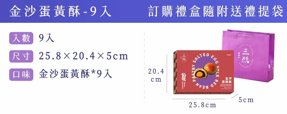 • 內容物:金沙蛋黃酥-9入