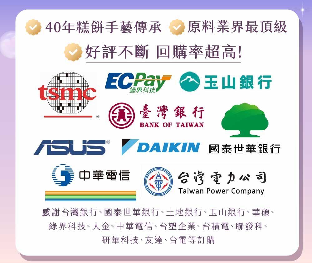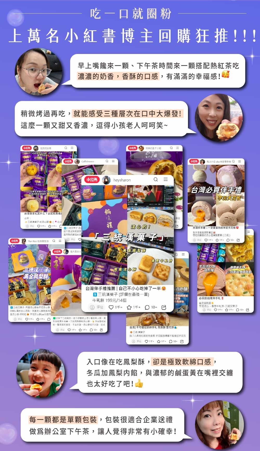 甜而不膩,香Q的口感,停不下來的團購零食,包裝精美用料實在,拿到辦公室下午茶,超有面子,價格高貴不貴,分量適中,適合團購零食,和大家一起吃吃吃,用料與製程更是細膩絕不馬虎!想要送禮送到心坎裡就選「三統雪花Q餅」,幫您顧及裡子,做足面子!