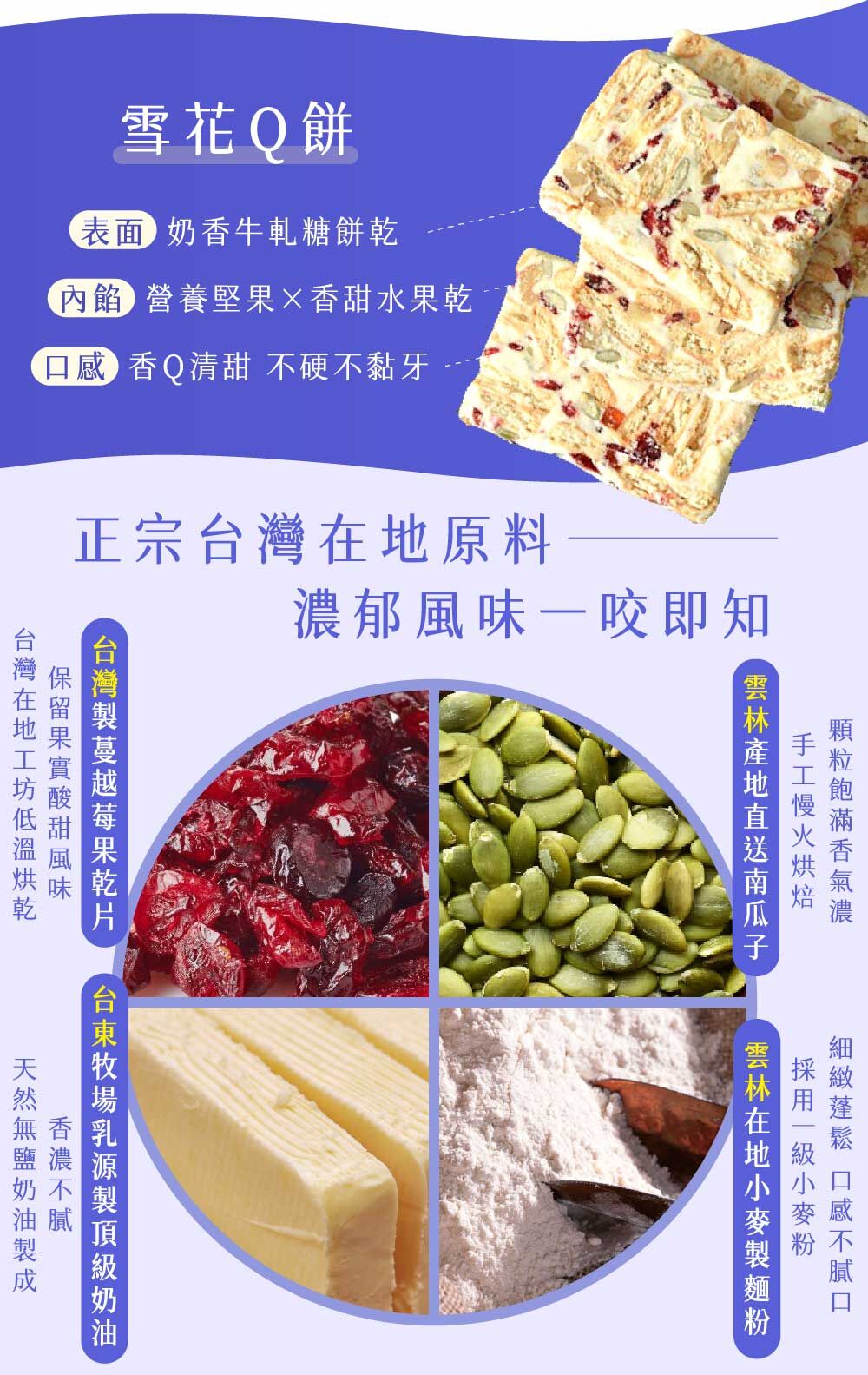 小編的最愛的零食推薦,一人一包剛剛好,追劇野餐看電影,熱門的團購零食「雪花Q餅」,香甜濃郁不死甜,牛軋糖餅乾搭配營養堅果,表面搭配豐富的水果乾,健康無負擔,辦公室下午茶一人一包剛剛好