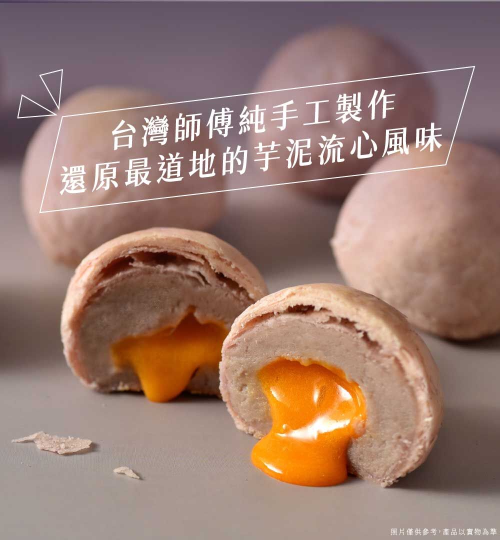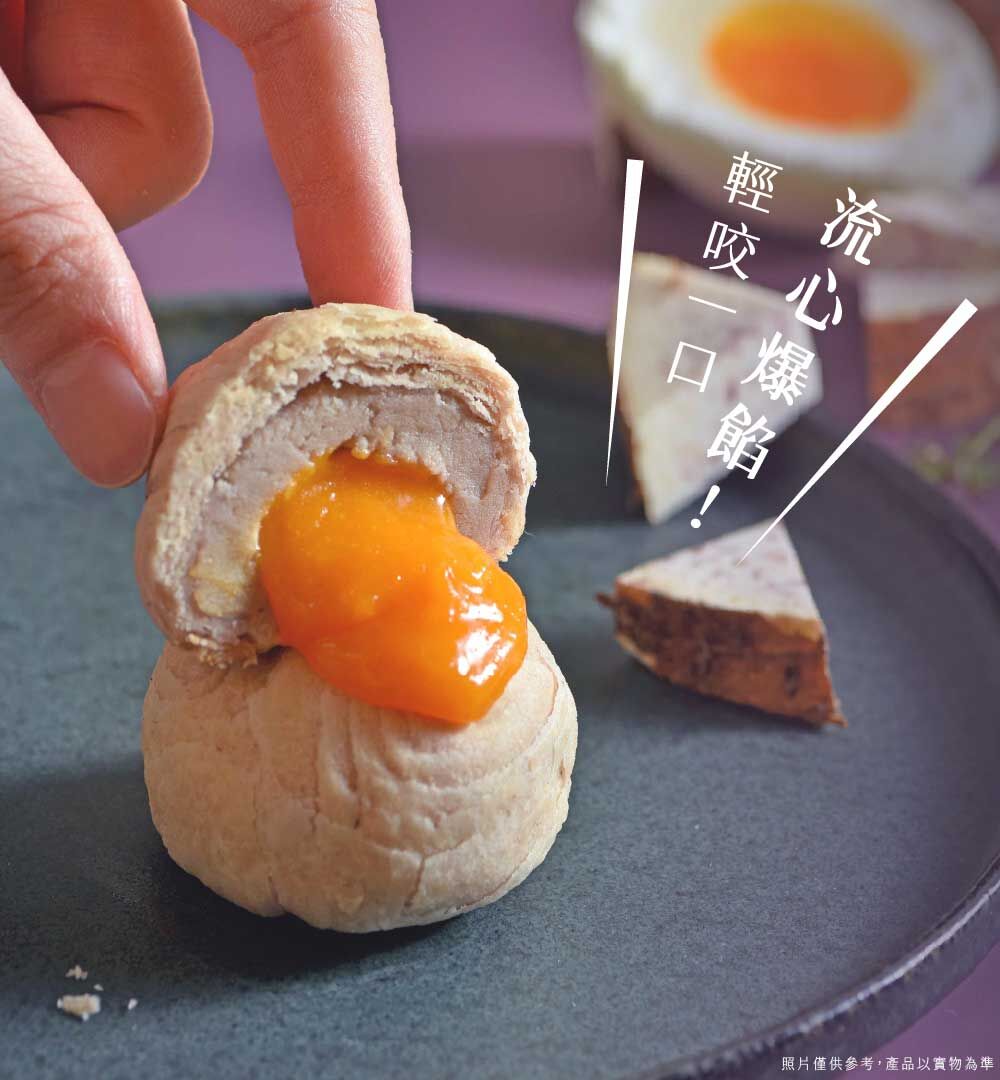 流心月餅大熱門!加溫後的芋頭酥就像現烤出爐,包裹的濃郁內餡倘倘流出。下午茶時光,輕咬一口,熱呼呼的流沙簡直讓人暖到心坎裡,鹹蛋黃與芋頭彼此相互交織融合,鹹甜反差感讓美味再翻倍,絲滑口感毫不留情地令人驚艷。
