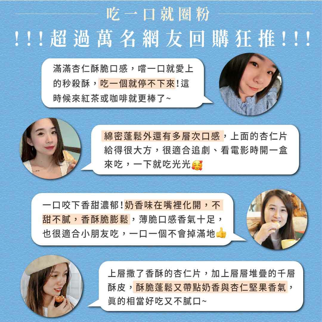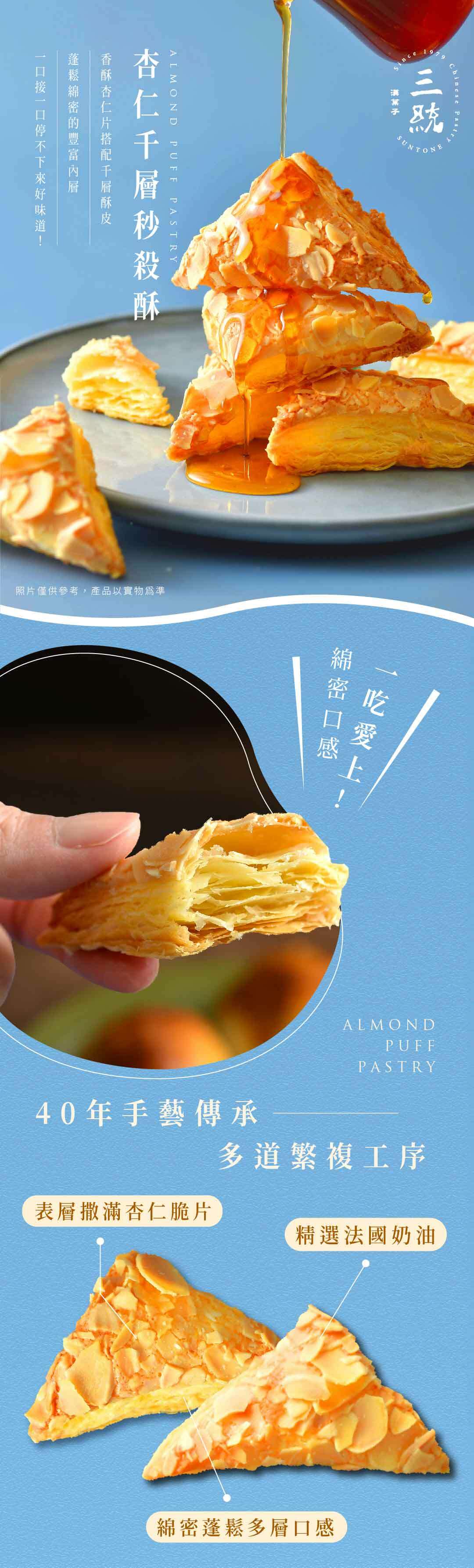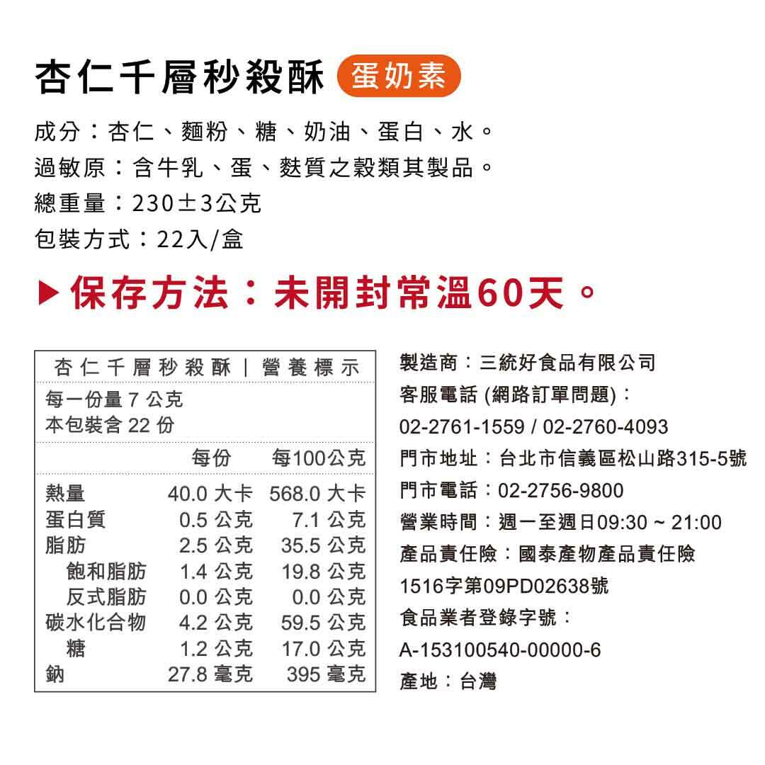 • 內容物:杏仁千層秒殺酥 22入/盒