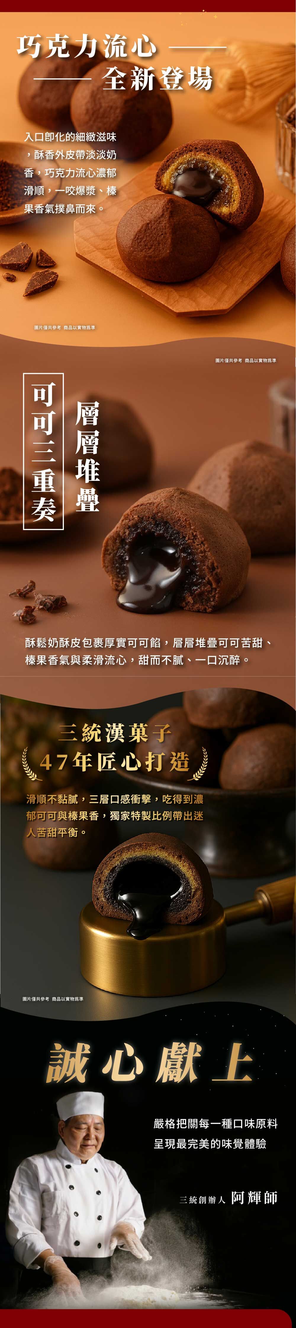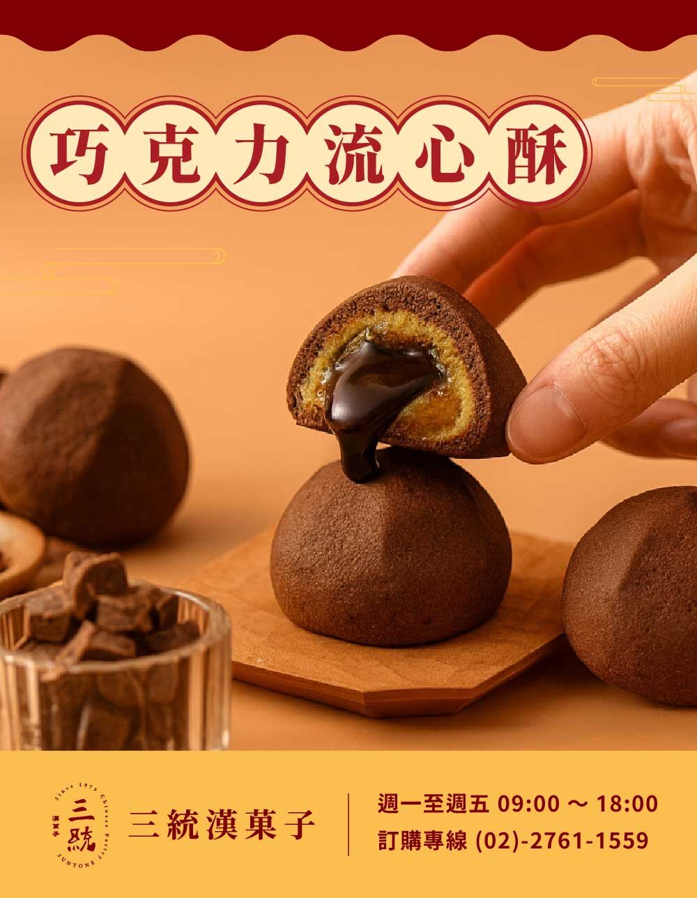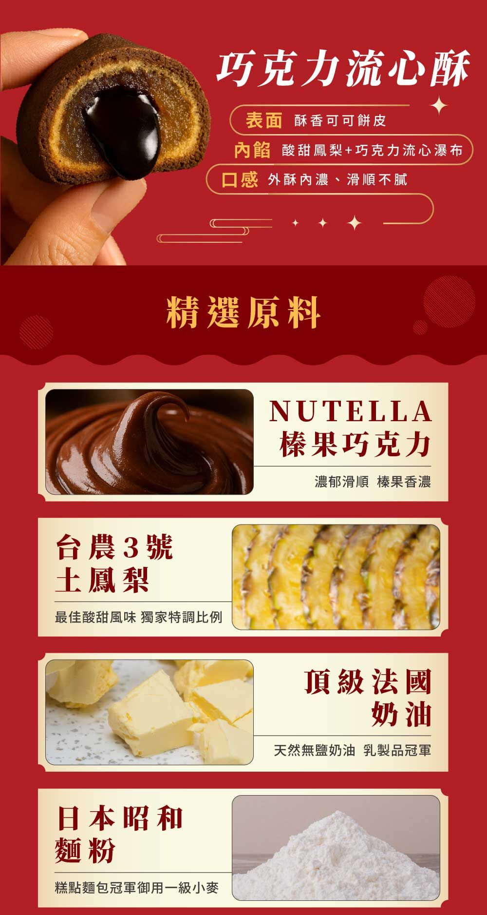 三統漢菓子巧克力鳳梨流心酥,外皮酥香鬆化,內餡以台農3號土鳳梨果肉搭配NUTELLA榛果巧克力流心,果香酸甜中帶有淡淡榛果香,苦甜平衡、絲滑不膩。濃郁可可中帶清爽果韻,一口咬下層層驚喜。