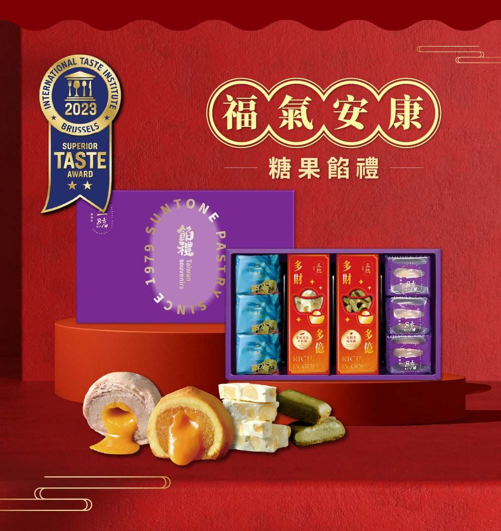 內容物: 鳳凰流心酥*3入+芋泥流心酥*3入+夏威夷豆牛軋糖*15入+包種茶娃娃酥*15入