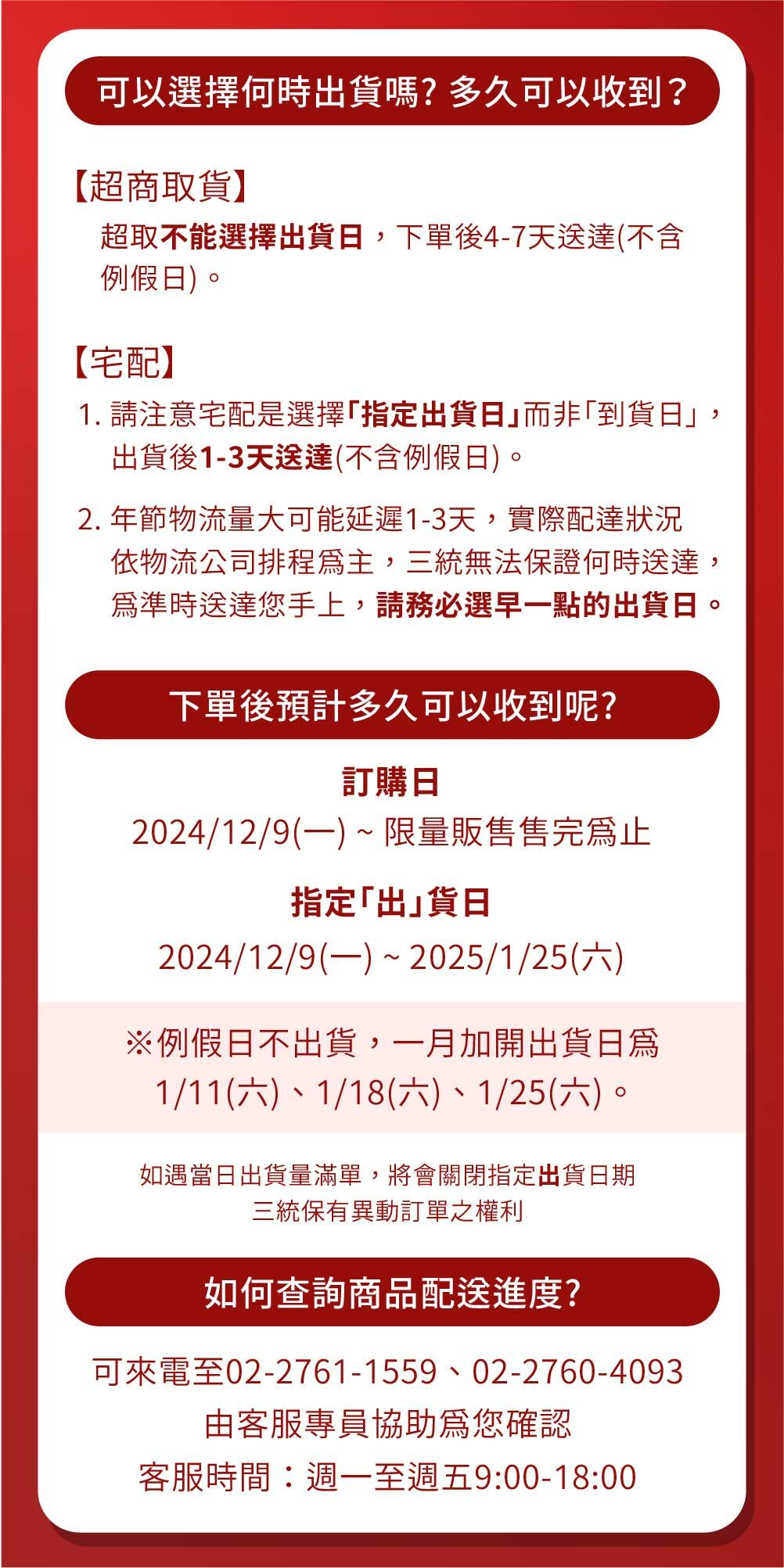 至2026-01-07T16:00:00.000+00:00截止 指定分類,2026過年早鳥優惠(滿3000>95折,滿8000>9折,滿20000>85折)