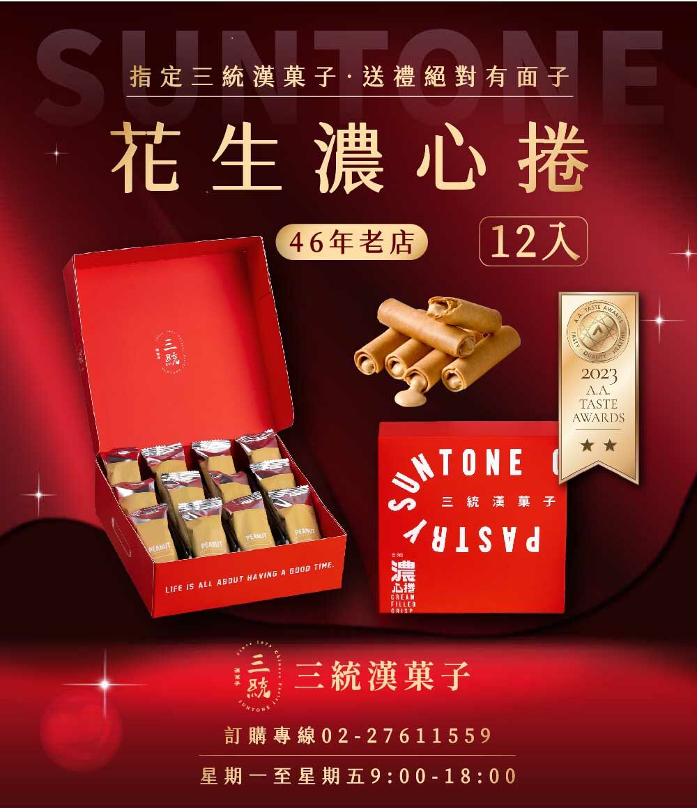 台北40餘年老字號,完美傳承了職人手藝,將漢餅內餡工藝運用在含餡蛋捲的研發上,開發出最適合送禮的含餡蛋捲禮盒:三統濃心捲。用料與製程更是細膩絕不馬虎!三統糕餅看似簡單紮實、卻風味深邃,款款均有獨樹一格的醇厚韻味,一掃傳統漢式糕餅的甜膩口感。除了是送禮首選「三統漢菓子」,幫您顧及裡子,做足面子!