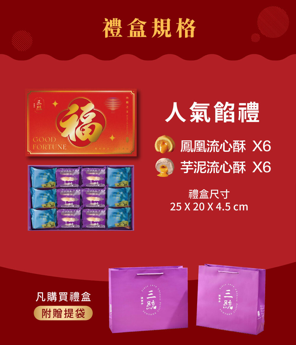內容物:鳳凰流心酥*6+芋泥流心酥*6