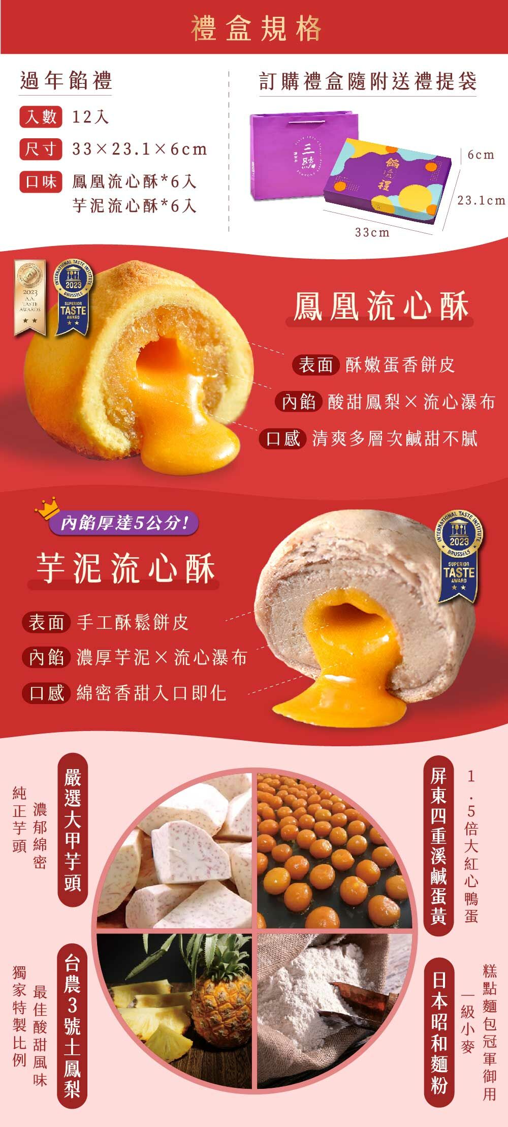 內容物:鳳凰流心酥*6+芋泥流心酥*6