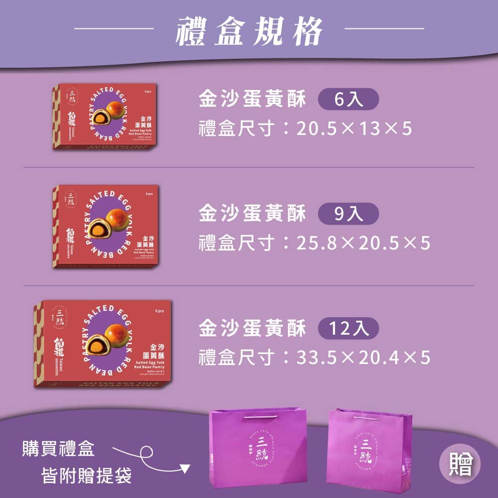 • 內容物:金沙蛋黃酥-6/9/12入